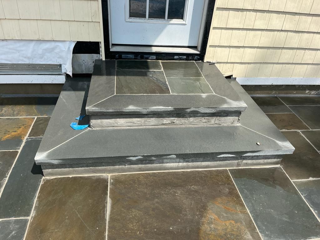 Blue Stone Expertly installed bluestone showcasing precision craftsmanship and long-lasting quality. Ideal for patios, walkways, steps, and outdoor living spaces with a timeless, natural finish.
